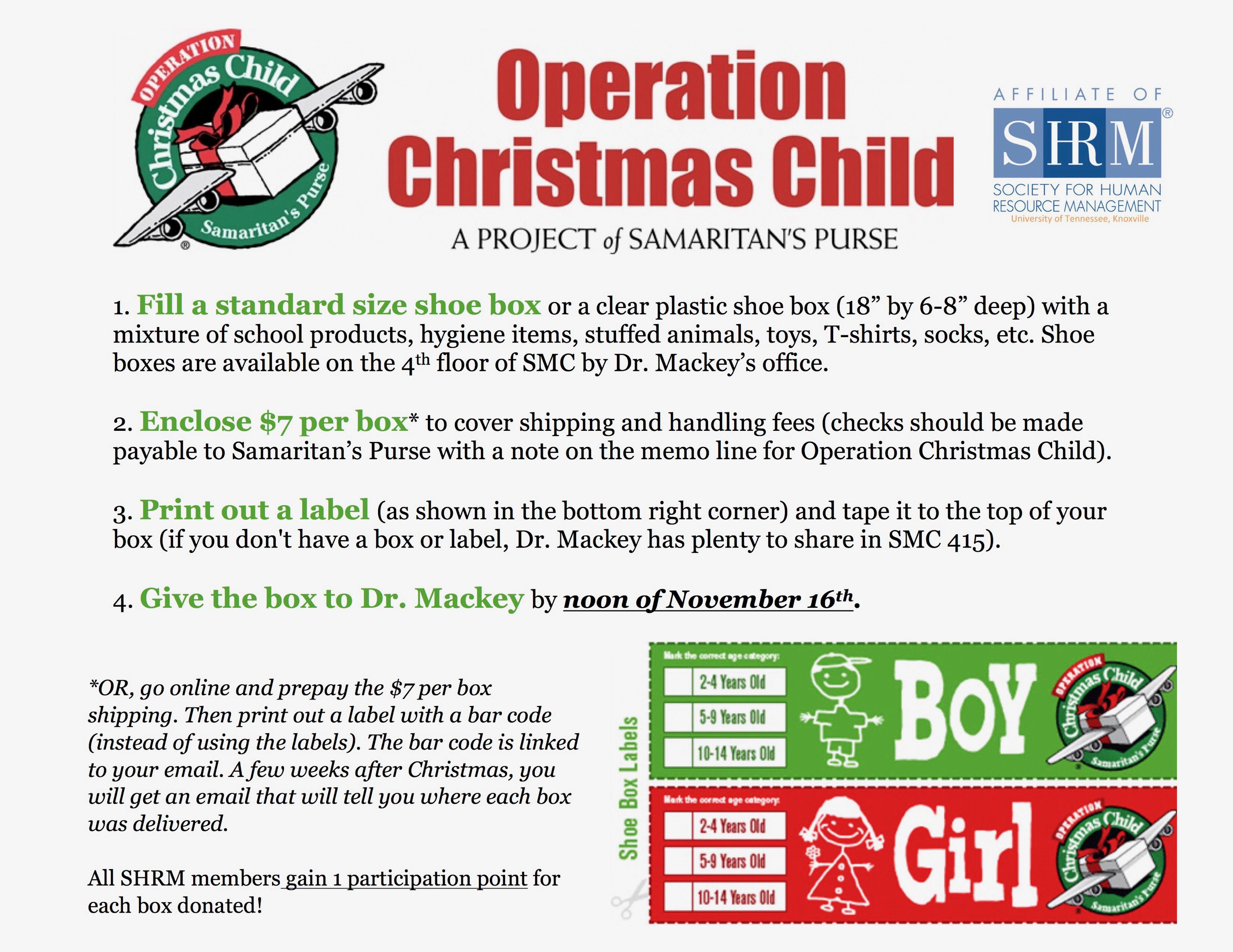 Labels & Leaflets - Samaritan's Purse UK Each physical leaflet includes step-by-step instructions, a donation form, a prepaid return envelope and the boy/girl age category labels that you will need for each shoebox. For the download leaflet please choose 'flip on short edge' if printing double sided. £ Free OR Boy/Girl Labels & Instructions - Black & White