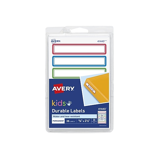 Amazon.com: Avery(R) Durable Labels for Kids' Gear, 3/4" x 1 ... May 15, 2014 · Avery(R) Durable Labels for Kids' Gear, 3/4" x 1-3/4", Assorted Border Colors, Water-Resistant Labels, 60 Rectangle Labels Total (41441) Svance Assorted Colors Waterproof Removable Labels - 260PCS with Pen Daycare Bottles Self-Adhesive Name Label Stickers for Baby,Kids,Toddlers School Supplies,Water Bottles,Mason Jar,Garage Sale