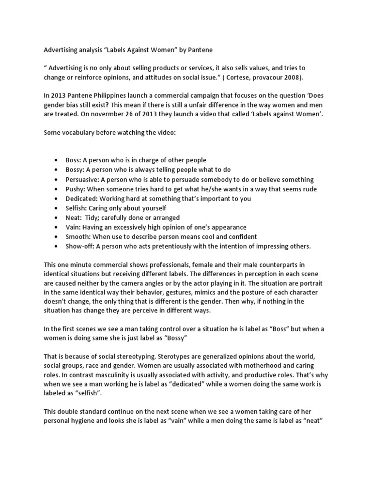 Pantene labels against women